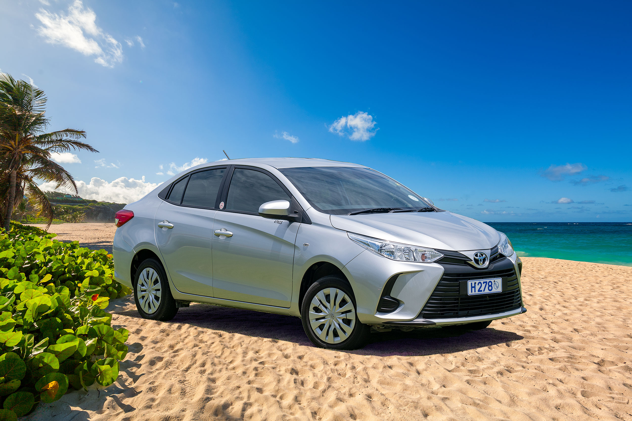 The 4-door Toyota Yaris is the sedan that surprises. Its compact exterior belies its class leading interior space and style. Beside comfortably seating five, the unexpectedly spacious trunk swallows your luggage or packages. All of your beach gear is easily accommodated while you explore the island in cool comfort. The fuel efficiency of the Yaris’ 1300 cc variable valve timing (VVT-i) engine means that you’ll go further into your adventures without the interruptions of fuel-stops, and leave you with more money to enjoy your vacation. Be sure to ask about child car seat installations, as this family sedan is equipped to receive popular mounting systems. Book the perfect sedan for your tropical getaway today.